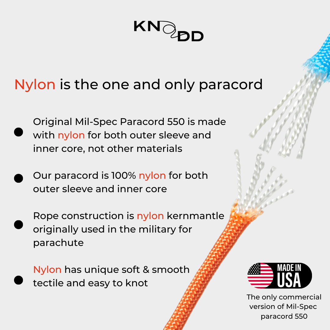 • 100% Nylon Paracord (Both Outer Sleeve and Inner Core)