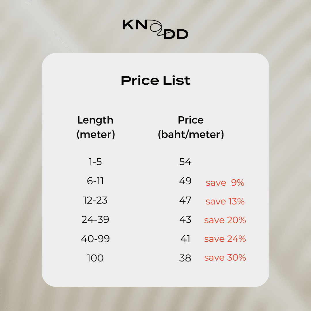 We sell in meter. Please fill in your desired length. The tier price depends on the amount of meters you order as below. You'll receive the highest discount on a standard spool of 100 meters
